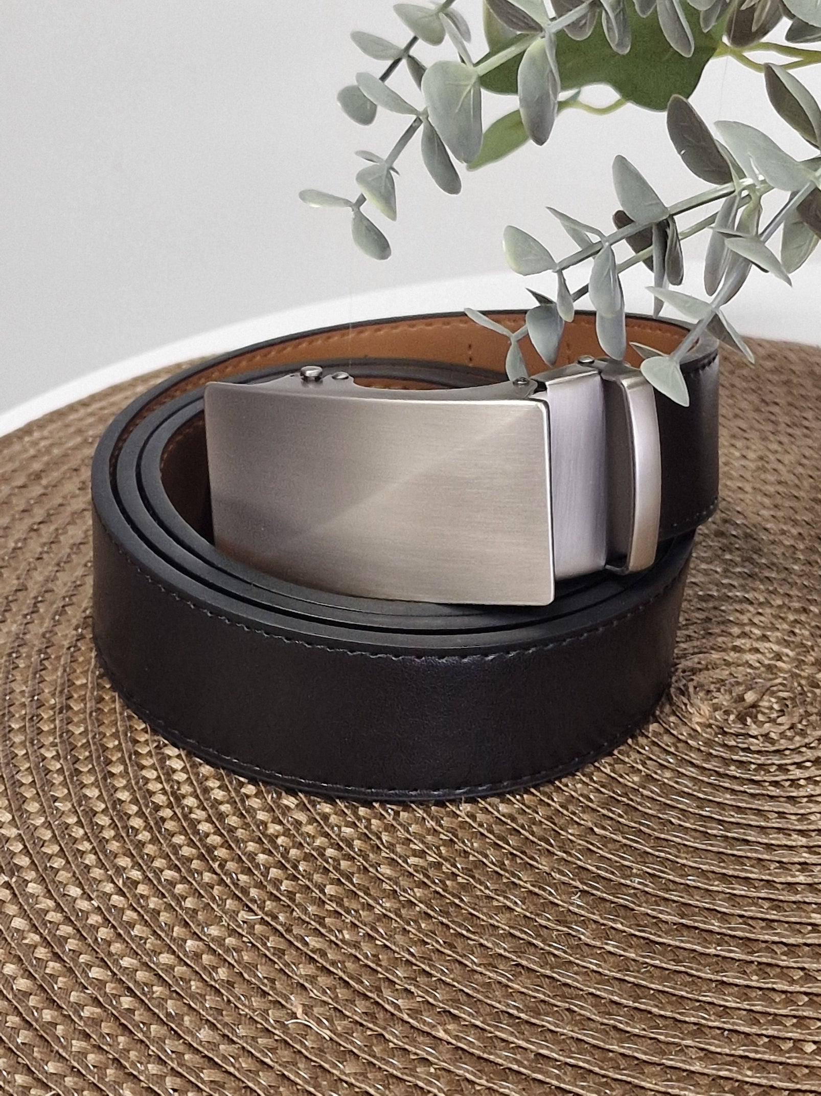 Black cowhide leather belt