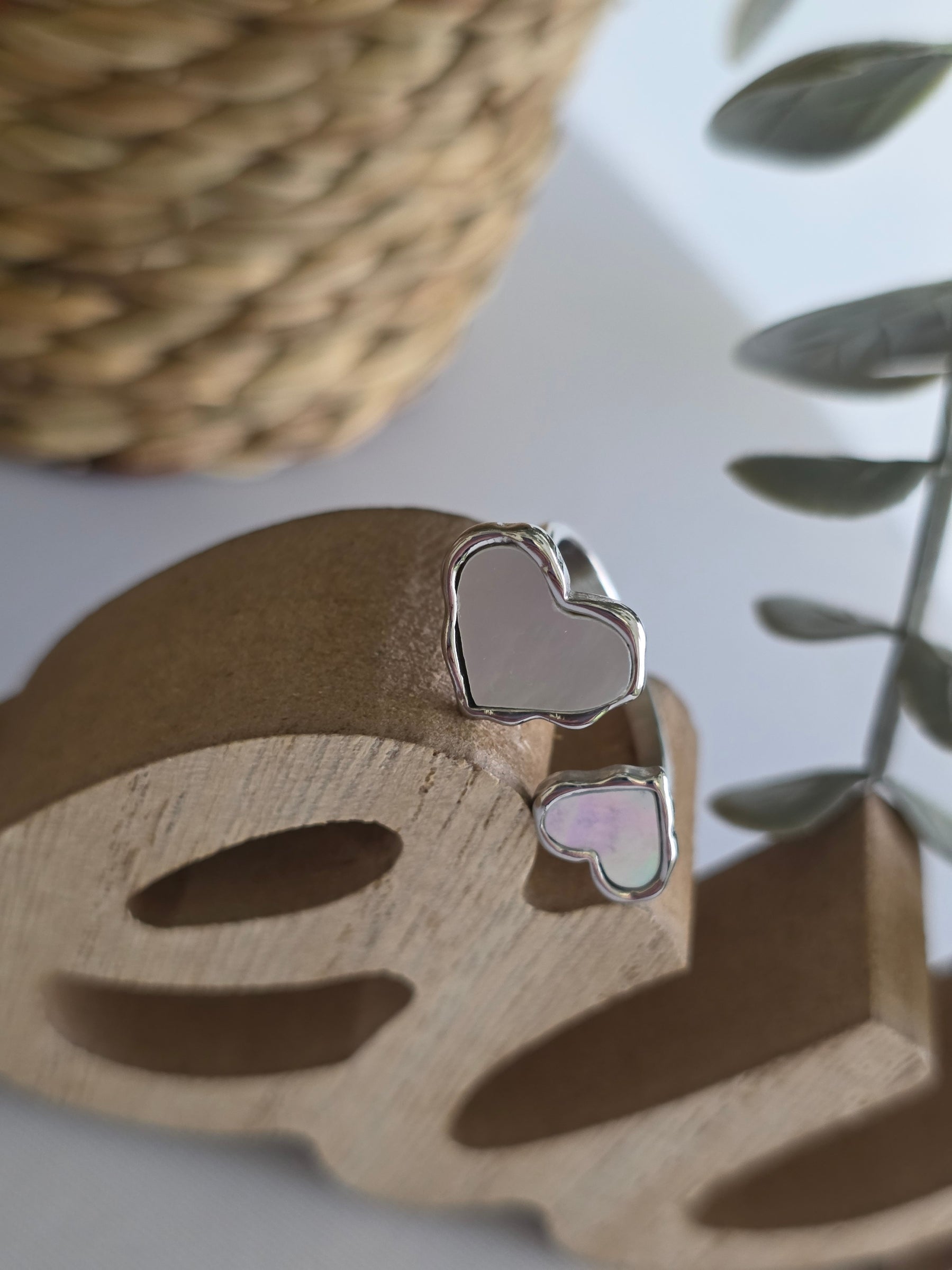 Nos Bagues Double Cœur Argenté Nacré