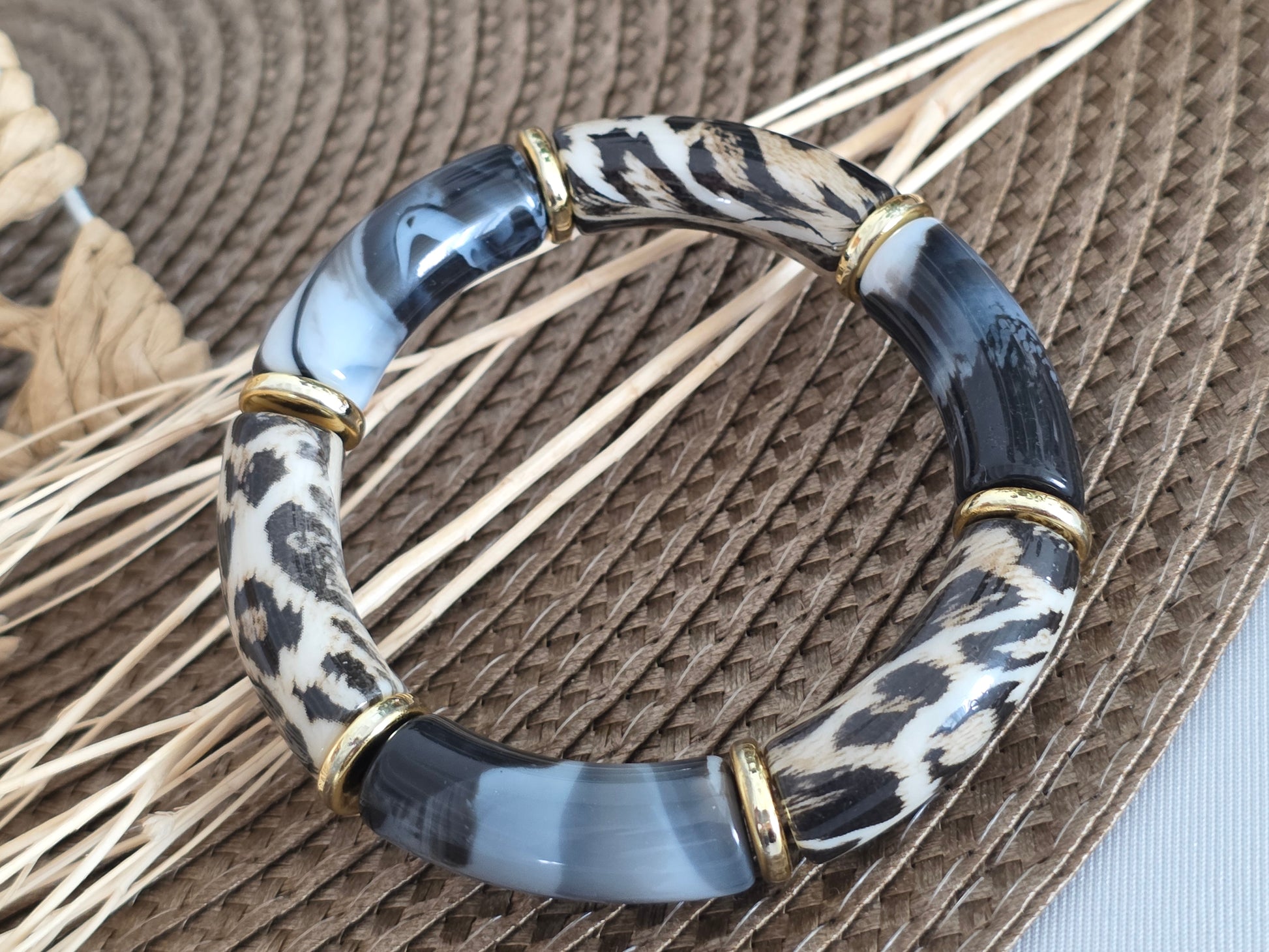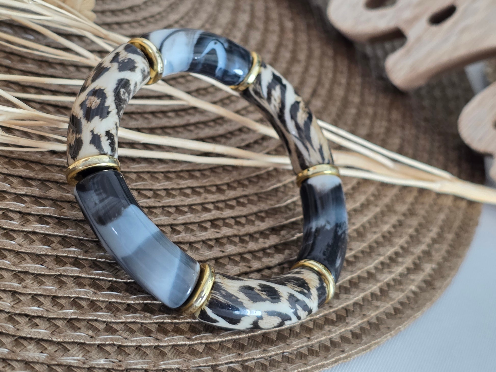 Notre Collection de Bijoux - Bracelet Jonc Léopard Gris