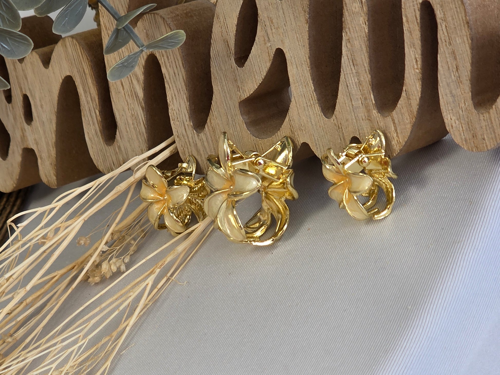 Pince Fleur Beige Doré - Lots de 3